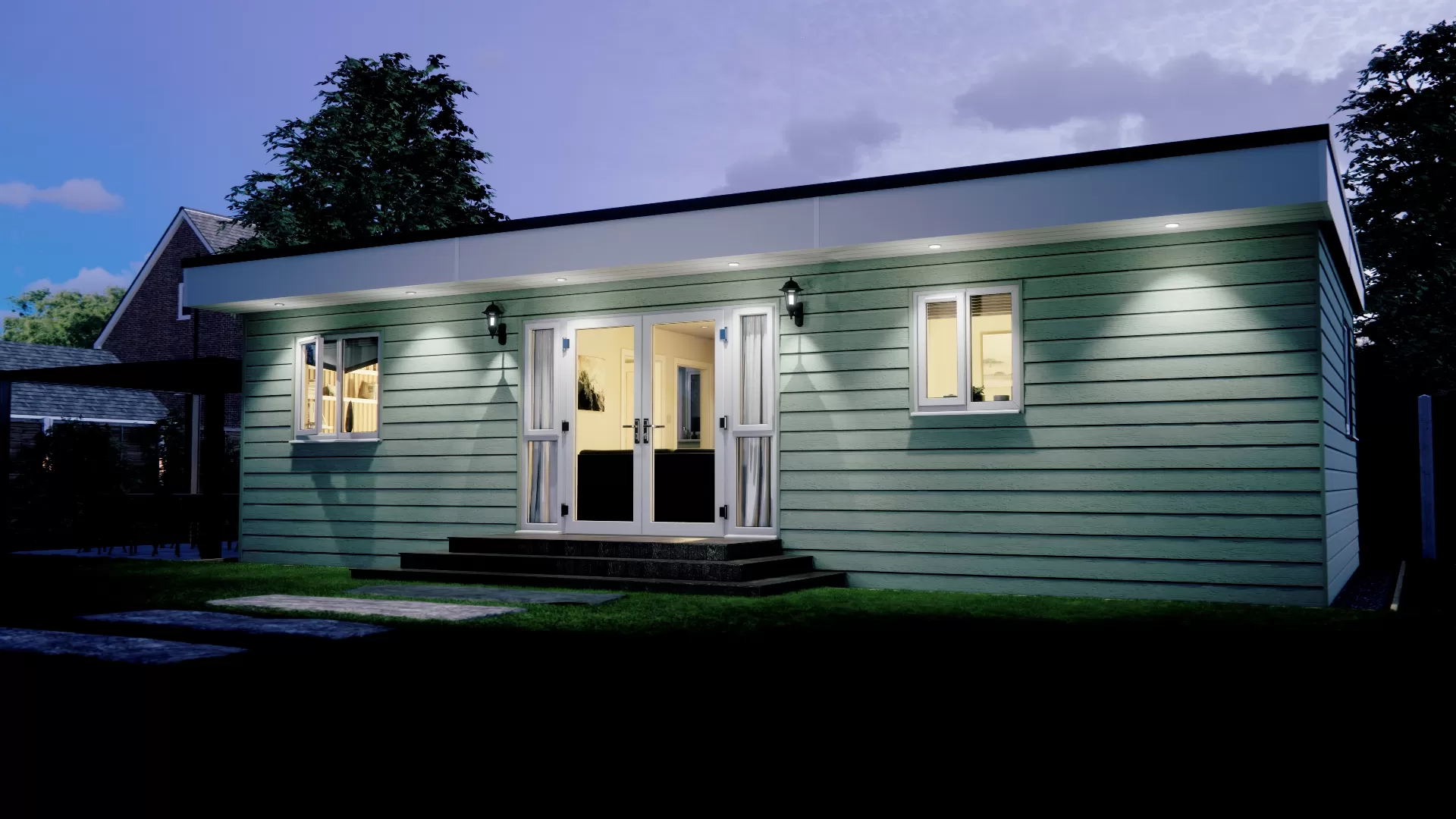 | Exterior | Fibre cement cladding, flat/pitched roof option | Fibre cement cladding, flat/pitched/vaulted roof option |
